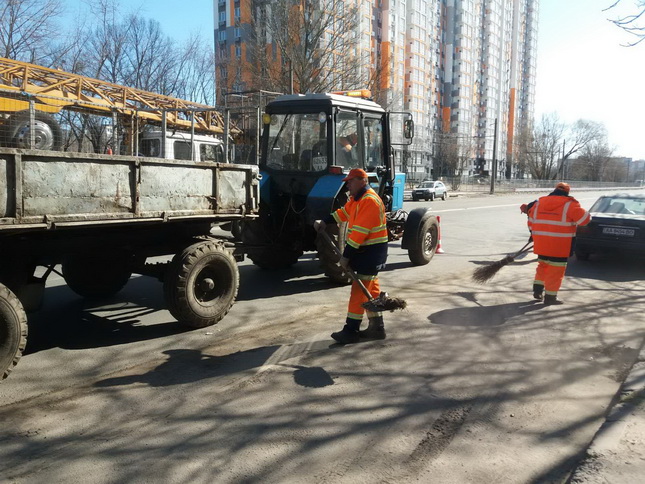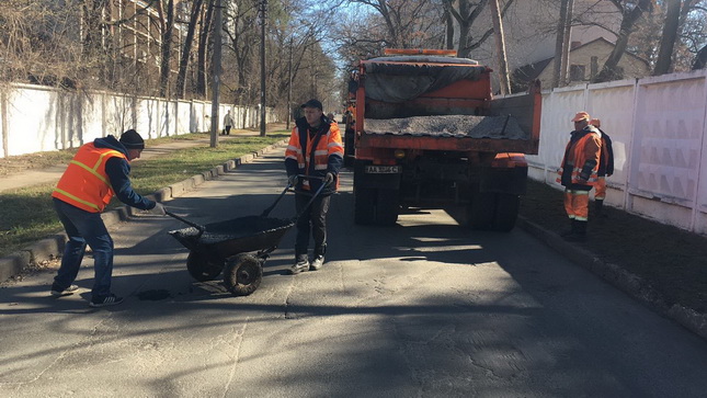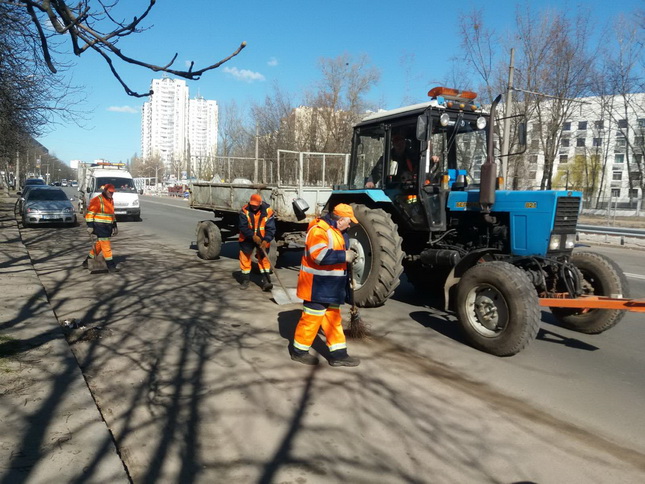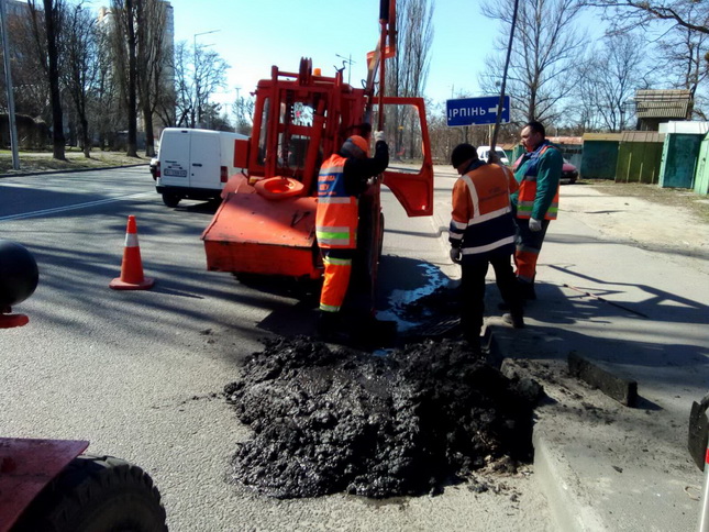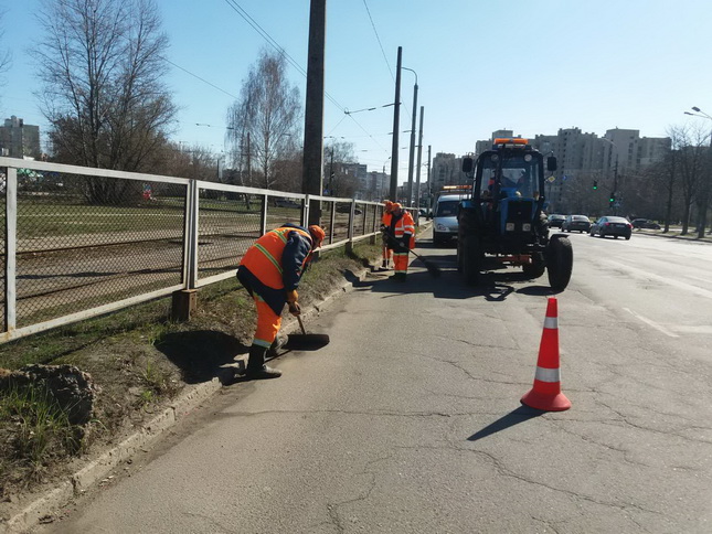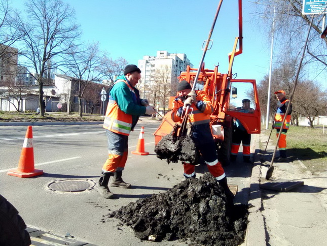 Працівники комунального підприємства «Шляхово-експлуатаційне управління по ремонту та утриманню автомобільних шляхів та споруд на них Святошинського району» продовжують упорядковувати район (фото)