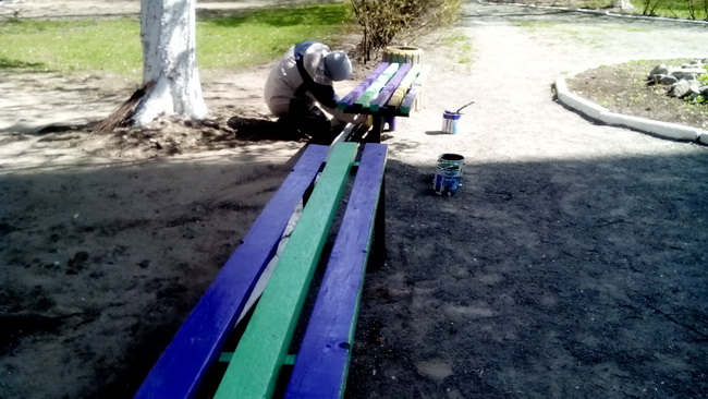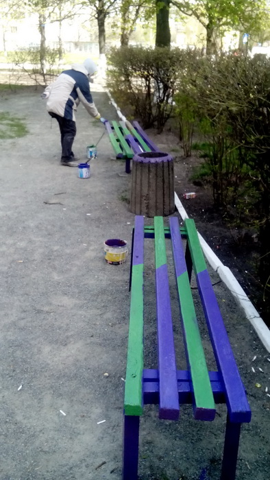А саме 24 квітня маляром «ЖЕД-4» під керівництвом майстра ремонтної дільниці Цесаренко Світланою Михайлівною були здійснені роботи по фарбуванню лав на прибудинкових територіях між житловими будинками № 11 та 13 по бульвару Ромена Роллана.