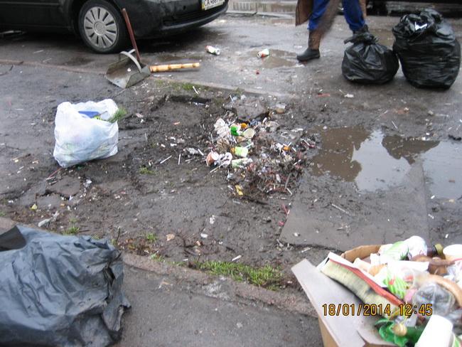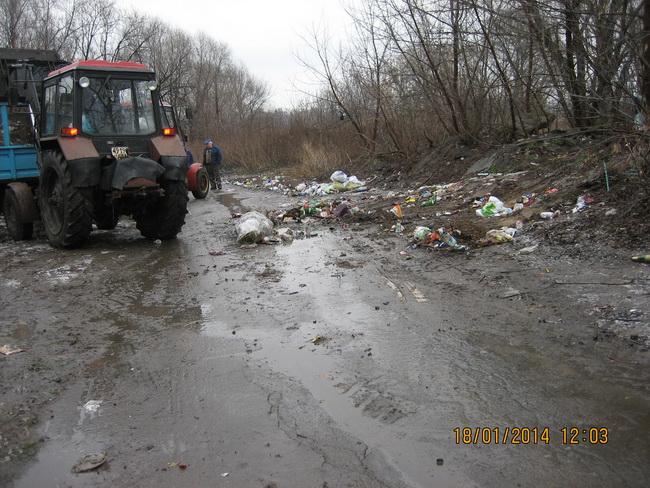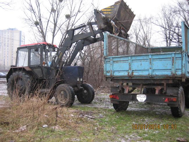 18 січня працівникам транспортної дільниці та дільниці по обслуговуванню приватного сектора КП «Дирекція з утримання та обслуговування житлового фонду в Cвятошинському районі м. Києва» черговий раз довелось боротися зі стихійним звалищем побутових відходів в приватному секторі Святошинського району – на вулицях Качури та Трублаїні.
