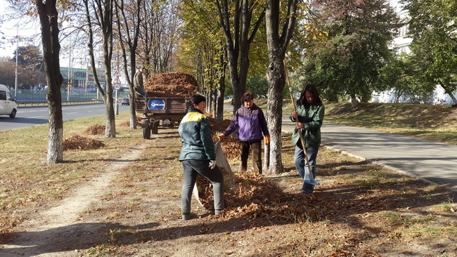 Суботнього погожого дня 180 осіб, серед яких працівники комунального підприємства «По утриманню зелених насаджень Святошинського району» та активна громадськість, енергійно працювали на толоці в парку «Юність», що на проспекті Леся Курбаса та бульварі Кольцова.