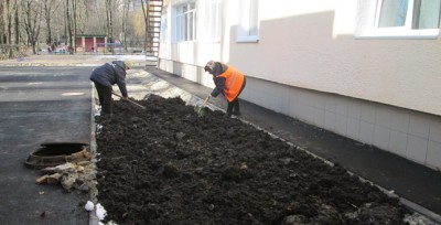 Працівники КП УЗН облаштовують газони у дитячому садочку (фото)