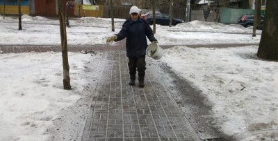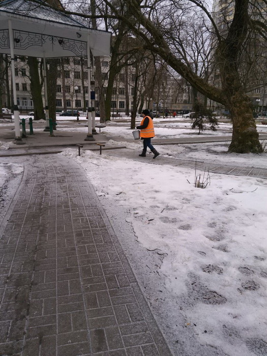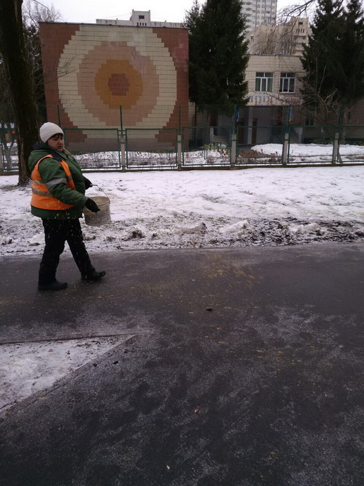 Сьогодні підморозило, і щоб киянам та гостям міста було комфортно і безпечно рухатись парковими доріжками та сходами, працівники КП УЗН Святошинського району дбають про це і з раннього ранку на своїх балансових територіях проводять посипання небезпечних ділянок піщано-сольовою сумішшю.