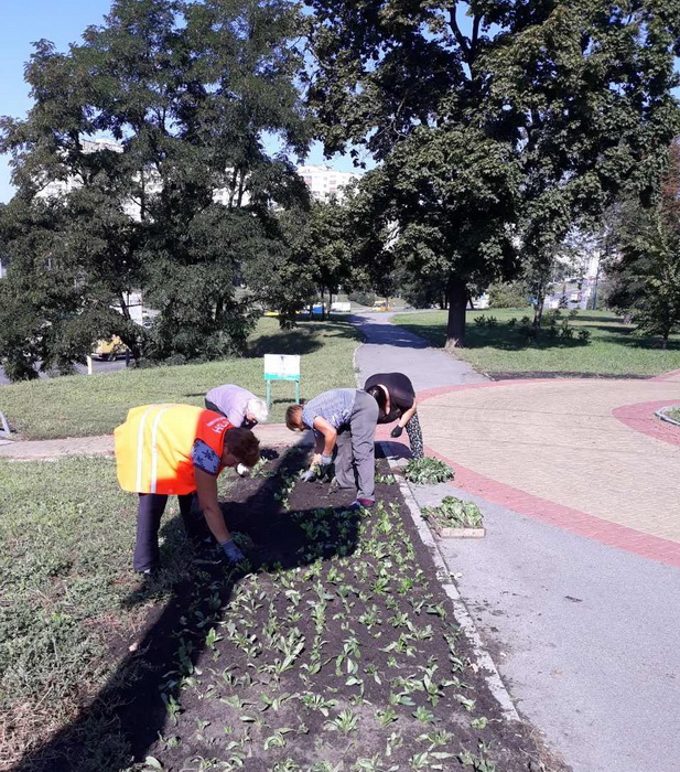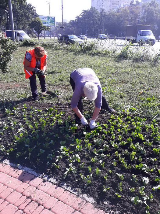 Працівники КП УЗН Святошинського району докладають максимум зусиль для того, щоб балансові території були зеленими та квітучими. І у сквері імені Василя Стуса, де на клумбах ростуть багаторічні квіти та ще квітують однорічні, озеленювачі підготовили вільну площу та провели посадку 5 тисяч рослинок маргаритки та незабудки.