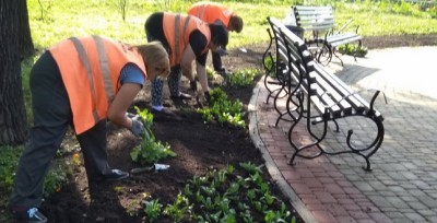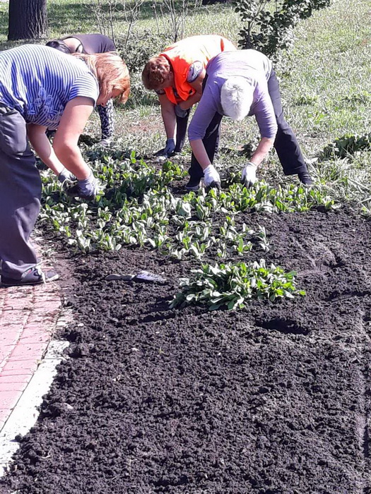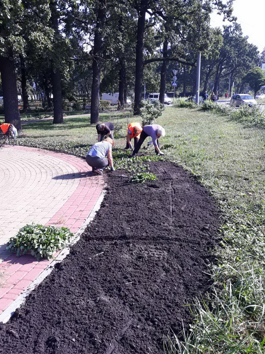 Працівники КП УЗН продовжують посадку квітів у сквері ім. Василя Стуса (фото)