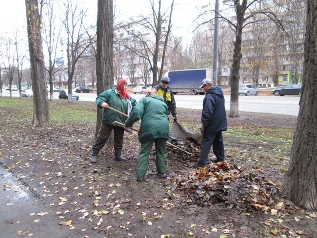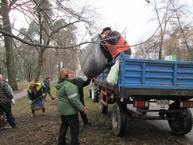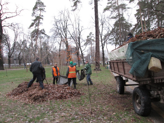 На теперішній час вже прибрано 25 га територій парків, скверів та інших зон відпочинку киян та гостей району і вивезено 1200 м3 листя на спеціальний майданчик для компостування.