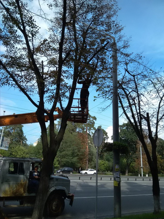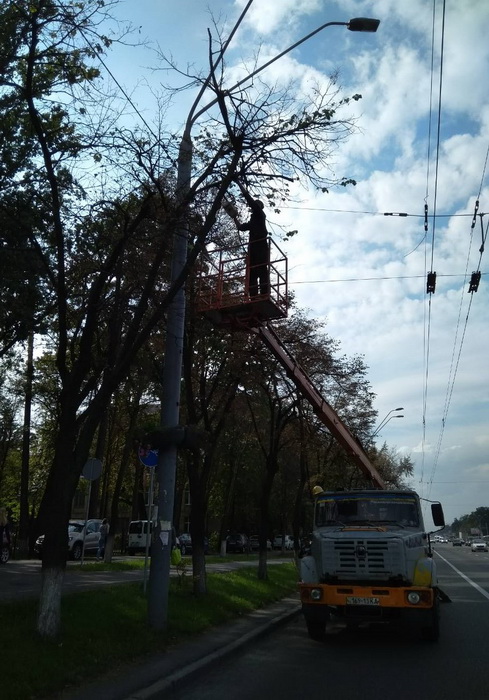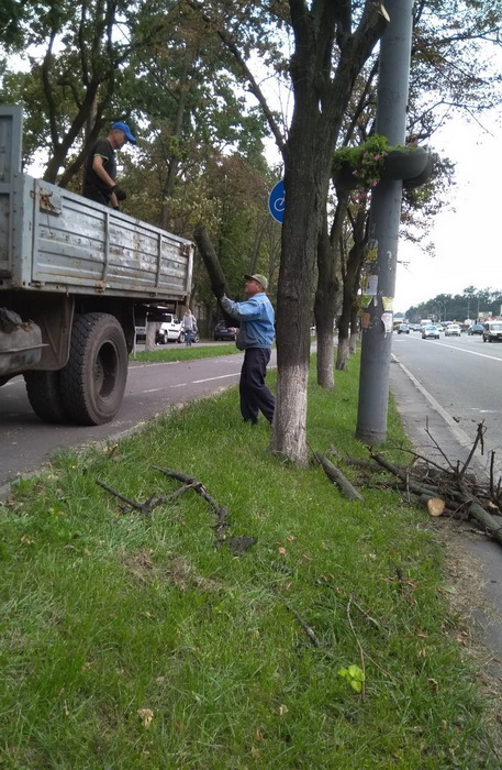 З метою уникнення аварійних ситуацій, запобігання травмування громадян, працівники КП УЗН Святошинського району на проспекті Перемоги виконали роботи по видаленню сухостійних дерев, а також сухих та завислих гілок. Паралельно, після виконаних робіт, проведено прибирання та вивезення рослинних решток на спеціальний майданчик.