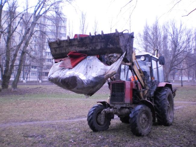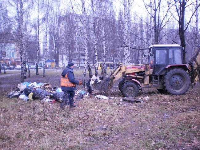 Працівники зеленого господарства, згідно виробничої програми, не тільки проводять роботи по озелененню територій, а й прибирають сміття, яким відпочиваючі щедро всівають землю зелених зон.