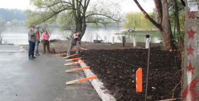 провели огородження дерев’яними стовпчиками близько 55 метрів найбільш пошкодженого газону.