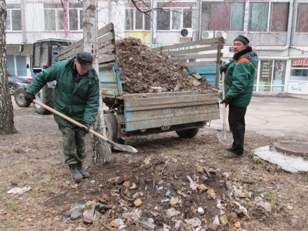 Працівники КП УЗН звільняють газони від будівельного сміття