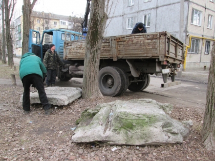 Нещодавно працівники зеленого господарства прибрали з газонів на вулиці Зодчих та в парку імені Генерала Потапова ушкоджені частини бетонних плит та більш як 6 кубометрів будівельного сміття.