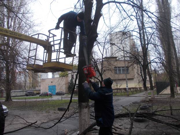 З метою запобігання аварійних ситуацій та травматизму мешканців мікрорайону, за останній місяць працівниками комунального підприємства з допомогою спецтехніки було проведено кронування та видалення сухих та аварійних дерев на прибудинкових територіях будинків № 5, 7, 14, 11 по вул. Доброхотова, вул. Семашка, 8-а та бульв.Академіка Вернадського, 63, 63-а.