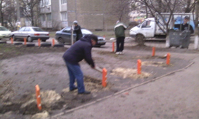 Так, за адресами: вул. Булгакова, 2 та просп. Корольова, 12 працівники «ЖЕД №1» провели розпланування ґрунту під майбутні зелені насадження, а також, щоб упередити паркування автівок на газонах, встановили обмежуючі кілочки довкола зелених зон.