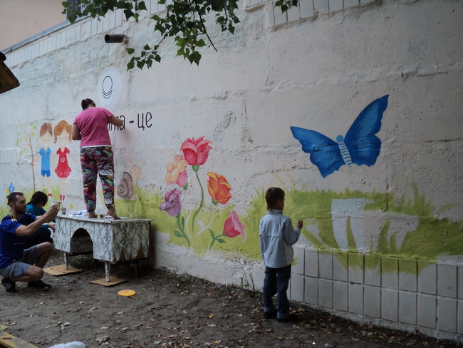 Дитячі майданчики мають бути не тільки цікавими для дітей, а й дарувати радість своїм зовнішнім виглядом. Саме тому працівники житлово-експлуатаційної дільниці №1 спільно з волонтерами перетворили сіру стіну будівлі, що знаходиться впритул до дитячого майданчика на проспекті Корольова, 10-А, на чудову розмальовану частину майданчика. Тож відтепер малюки отримають набагато більше задоволення від перебування на цьому дитячому майданчику.