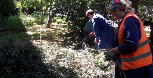 Працівники житлово-експлуатаційної дільниці №2 постійно піклуються про стан дерев на балансові території і при необхідності здійснюють санітарну обрізку гілля. Та на цьому робота не закінчується адже, щоб території після даного виду робіт виглядала охайно її потрібно прибрати.