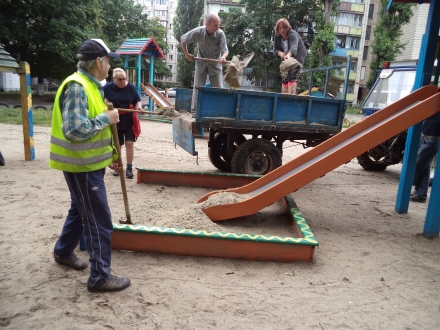 Дитячий майданчик – один з головних елементів для кожного двору. Тут маленькі мешканці роблять свої перші кроки назустріч суспільному життю. Саме тому майданчики мають бути доглянутими та постійно оновлюватися. З цією метою працівники «ЖЕД-3» подбали про завезення піску в пісочниці на дитячих майданчиках. Першочергово було завезено пісок на дитячі майданчики житлових будинків по бульвар Кольцова,17-В (між будинками «В» та «Г»)/