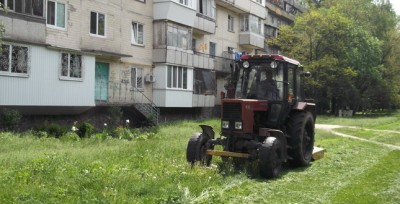 Для проведення покосу трави задіяно 5 газонокосарок та трактор.
