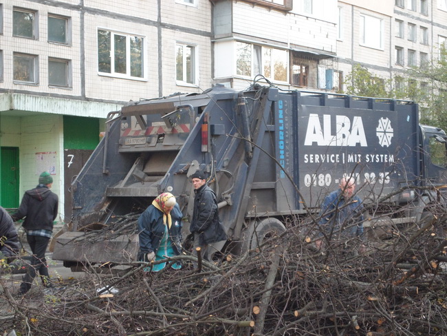 Так, на прибудинкових територіях житлових будинків за адресами: вул. Я. Коласа, 5, 7, 9, 11, 13, 17, 21, вул. Кіпріанова, 4, 6, 6-А та вул. Жмеринська, 22, 22-А, 24, 28 під керівництвом майстра Метнічук Анжеліки Валеріївни були поведені роботи з прибирання великогабаритних відходів та залишків кронованого гілля.