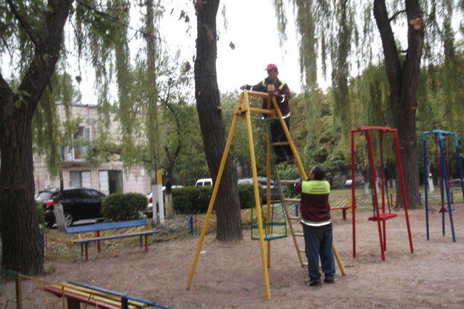 Так, працівники житлово-експлуатаційної дільниці №6 відремонтували та пофарбували конструкції дитячого майданчика на бульварі Вернадського, 63-А.
