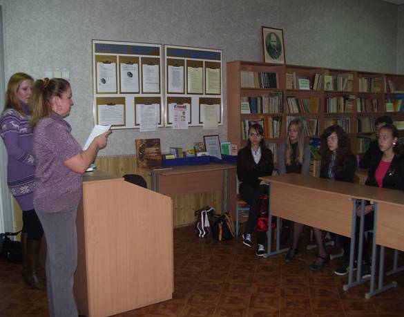 24 жовтня - У бібліотеці спеціалізованої школи №185 ім. Володимира Вернадського відбувся правовий тренінг для учнів 9-х класів. Його провели завідуюча бібліотекою ім. Герцена Ричек Л.Г. та бібліотекар Киткова Т. Л. спільно з представниками Святошинського районного управління МВС старшим опер - уповноваженим Ткачуком О.О. та криміналістом Колоколовою – Павлюковою Н.С.