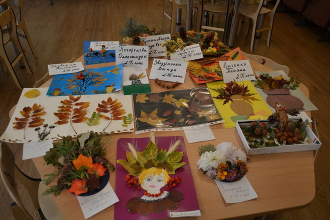 Нещодавно школярі початкової школи відобразили осінній настрій у творчих роботах, які презентували на виставці «Осінь - чарівниця». Діти виготовили чудові поробки не лише з листя, жолудів та шишок, а й змайстрували незвичні фігурки з картоплі. Презентували свої роботи і учні, які відвідують гурток вишивки. В цих роботах діти передали яскравість кольорової гамми її величності Осені.
