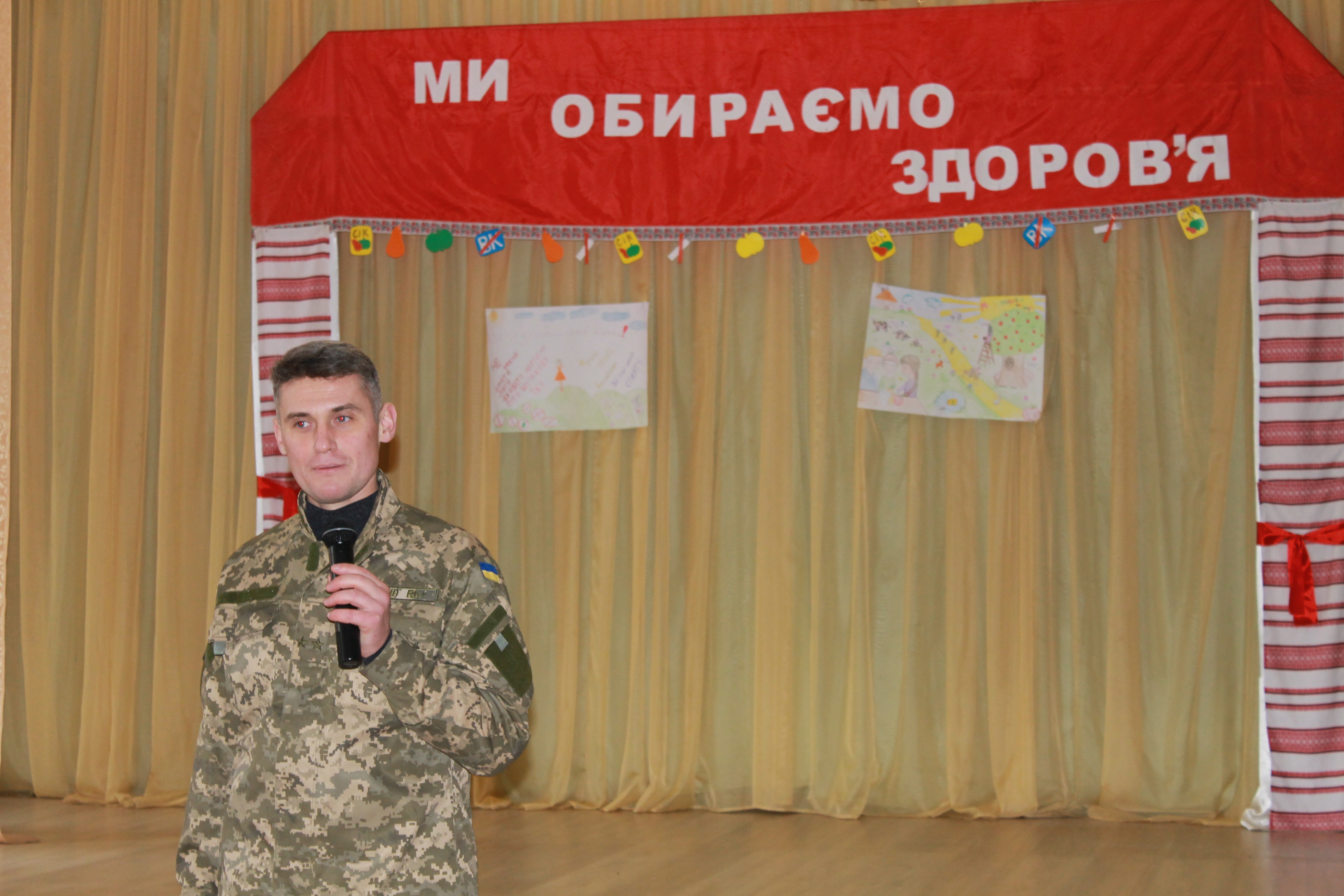На свято завітав почесний гість – підполковник Біляєв Євген Олександрович. На початку свята Євген Олександрович виступив з промовою про діяльність, якою він займався до АТО. Євген Олександрович розробив законопроект «Про заборону реклами тютюнопаління», який діє в нашій державі вже не перший рік, також він займається проектами «Про відмову від тютюнопаління та вживання алкоголю», «Підтримка та допомога у реабілітації дітям з синдромом ДЦП». Також Євген Олександрович закликав учнів до активної пропаганди здорового способу життя.