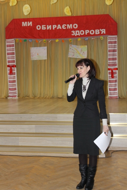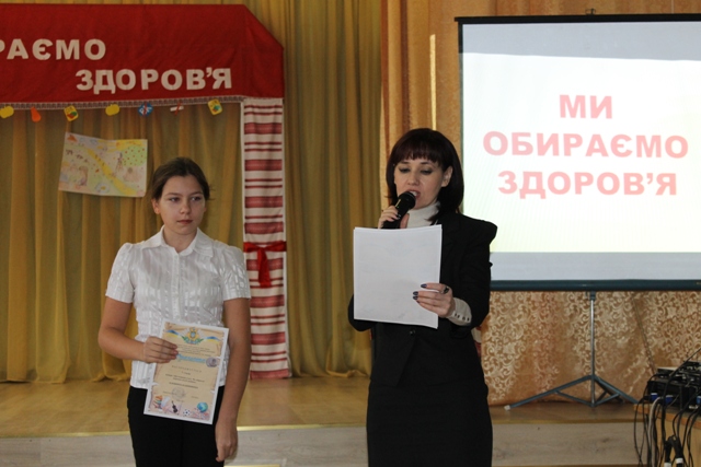 Директор школи Жук Л. В. подякувала учням 7-х класів за яскравий та повчальний виступ, підтримала дітей у їх закликах вибирати здоров’я та нагородила учнів 7-А класу грамотою «За яскравість та талановитість», а учнів 7-Б класу – «За креативність та артистизм»