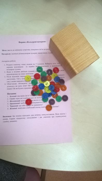 - ознайомилися та провели вправу «Кольорові цукерочки», що спонукає під час роботи з сім’єю супротив до мінімуму;