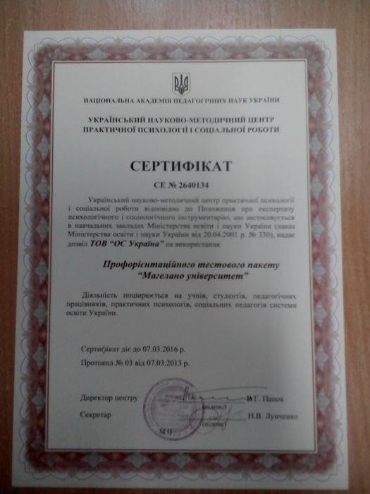 Тестовий пакет “Magellano Університет” – є важливим інструментом для мотивованого вибору вищої освіти, оскільки забезпечує всебічний психологічний аналіз інтересів, нахилів та здібностей учасника, його відношення і мотивацію до навчання, та аналіз інших факторів, що впливають на успіх в професійній діяльності.