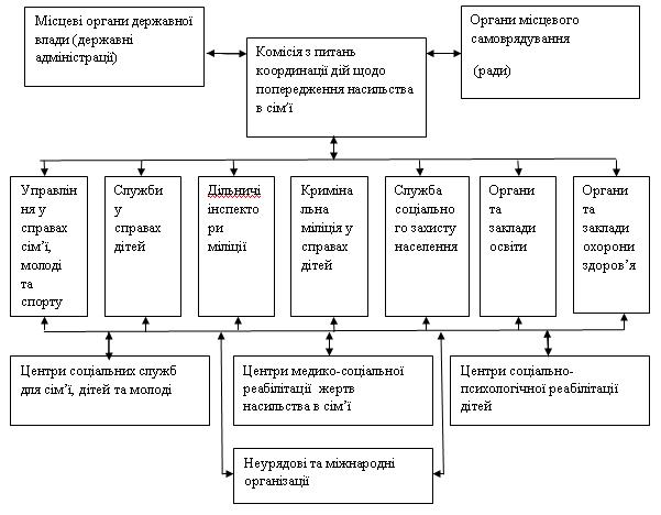 На місцевому рівні мережа інституцій, залучених до протидії насильству в сім’ї, виглядає наступним чином: