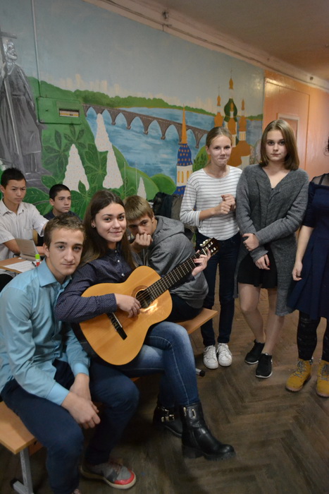 А учні старших класів провели перерву під приємний передзвін гітари.