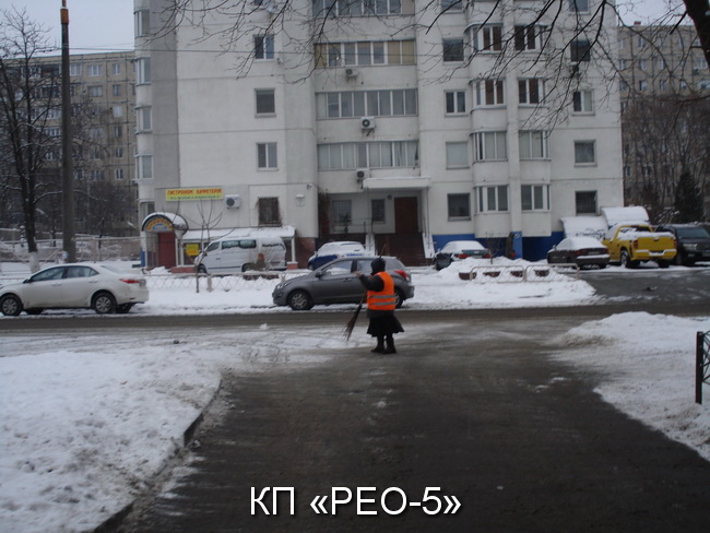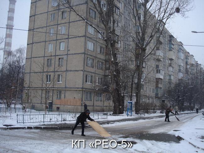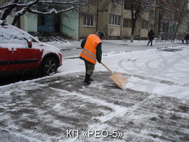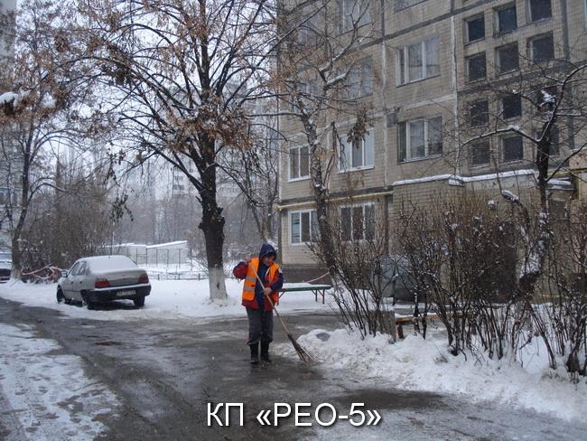 З метою виникнення надзвичайних ситуацій і недопущення травматизму у зимовий період, забезпечення належного та вчасного очищення прибудинкових територій, тротуарів, міжквартальних проїздів від снігу та ожеледиці працівниками КП «РЕО-5» проводяться роботи на закріплених територіях. Наразі працюють 2 одиниці снігоприбиральні техніки, 48 робітників КПУБ з забезпеченням піщано-соляної суміші.