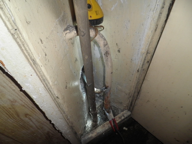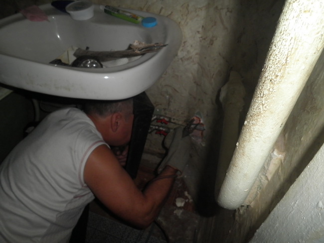 Слюсар-сантехнік КП «РЕО-6» Олександр Розщепій проводить заміну стояка водопостачання в одній із квартир житлового будинку на вулиці Ушакова, 10, за кошти, що надійшли від сплати мешканців за житлово-комунальні послуги.