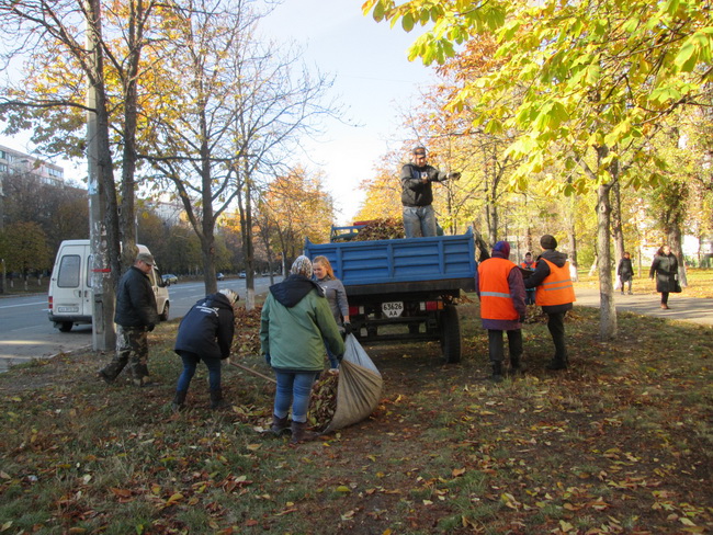 Протягом тижня працівники зеленого господарства упорядкували сквер на розі Симиренка і Григоровича-Барського, проспект Леся Курбаса, бульвар Кольцова та частину вулиці Симиренка. Транспортом підприємства вивезено понад 50 м3 опалого листя на спеціальний майданчик для компостування.