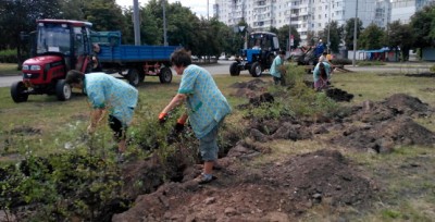 Роботи з озеленення біля транспортної розв’язки в розпалі (фото)