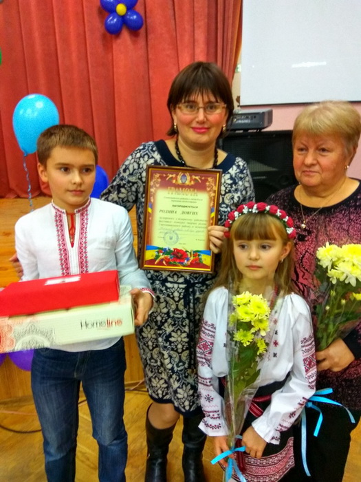 Щиро вітаємо творчу родину Довгих, діти якої навчаються у СЗШ № 215 – в 6–А та 1–В класах, з перемогою у номінації «Родинне вміння з покоління в покоління». Зичимо переможцям родинного затишку, благополуччя і миру!