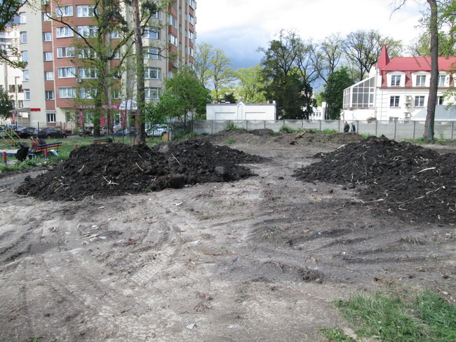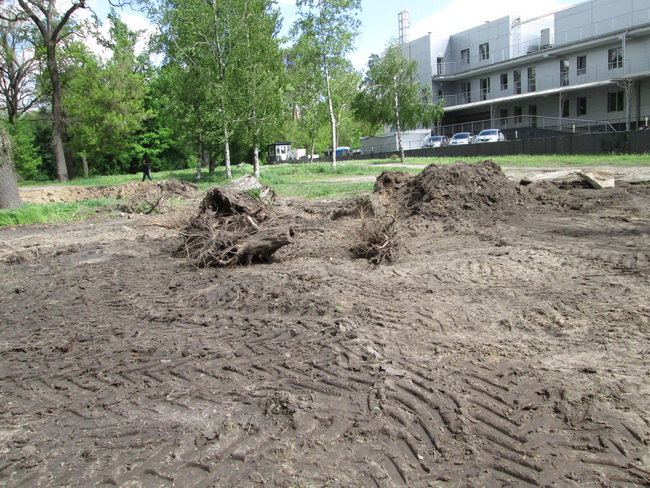 Наразі працівники КП «По утриманню зелених насаджень Святошинського району» розпочали роботи на цьому об’єкті. Так за минулий тиждень було видалено поросль на 20 квадратних метрах, проведено корчування 20 пнів, підготовлено 100 квадратних метрів площі для влаштування газону та завезено 80 тон родючого грунту.