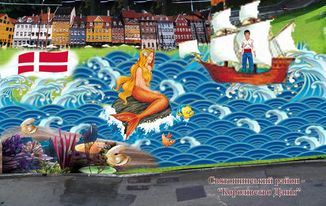 І дизайнером комунального підприємства по утриманню зелених насаджень Святошинського району заздалегідь було вибрано та розроблено макет майбутнього твору, де висвітлено казковий світ Г.Х.Андерсена з його Русалочкою.