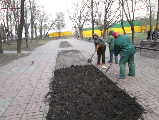 Наразі проводяться роботи по перекопуванню квітників, а під дворічними та багаторічними рослинками, які були висаджені восени, прорихлюється грунт. На даний час упорядковано 450 квадратних метрів квітників у парках «Юність», «Інтернаціональний», в скверах на вулиці Прилужній та по проспекту Перемоги, 97.
