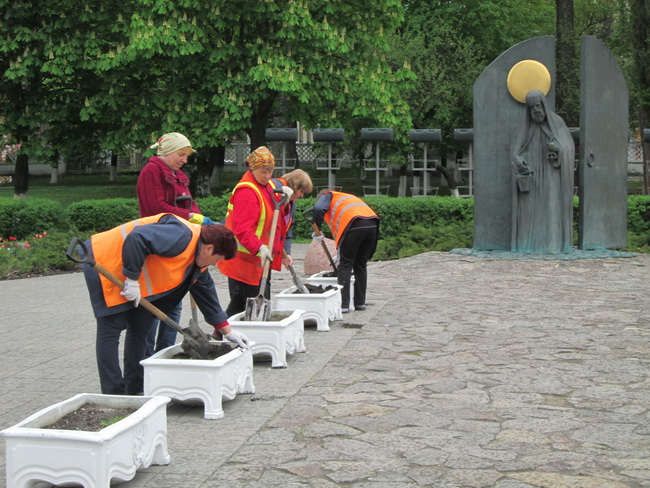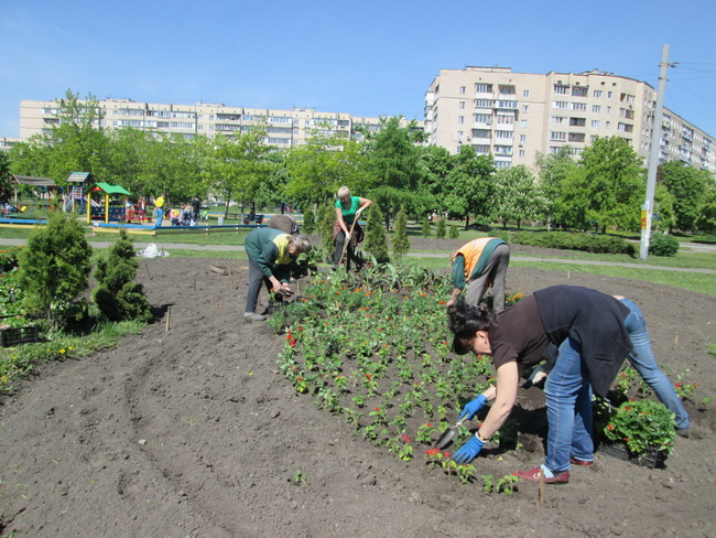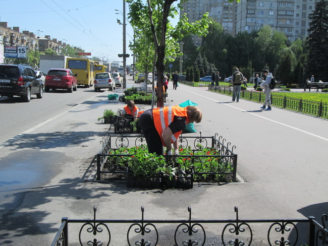 З початку робочого тижня закипіла робота по висаджуванню квітів на проспекті Перемоги, 97 біля Святошинської районної держадміністрації, на проспекті Перемоги, на бульварі Вернадського та в сквері на розі вулиці Симиренка та вулиці Григоровича-Барського. Наразі висаджено понад 27 тисяч рослинок сальвії, петунії, чорнобривців, цинерарії, аспарагусу та канни.