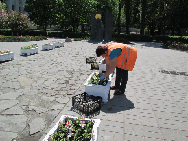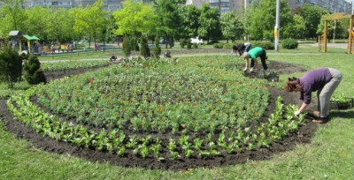 Після того, як минула загроза заморозків, першочерговим завданням озеленювачів є посадка підготовленої квіткової розсади в вази, рабатки та квітники.