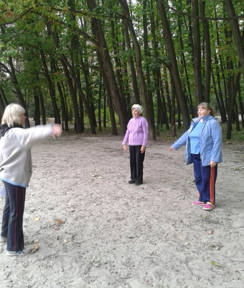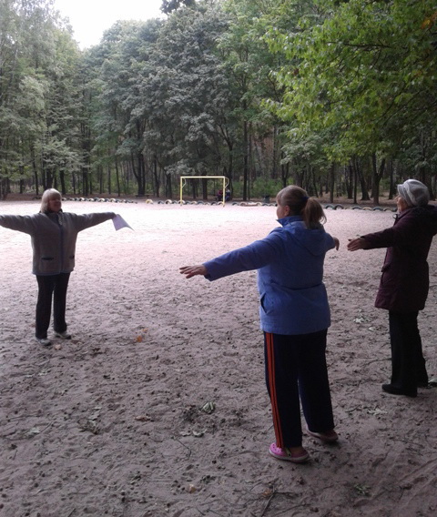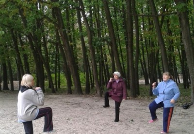 Заняття з інструктором Аллою Білою проходять на спортивному майданчику в парку «Совки», який розташований на вул. Жмеринській. Усі фізичні вправи підбираються з урахуванням вікових особливостей спортсменів. Обраний інструктором комплекс вправ – це помірковане навантаження на різні групи м’язів, що поліпшує функціонування різних систем організму людини.