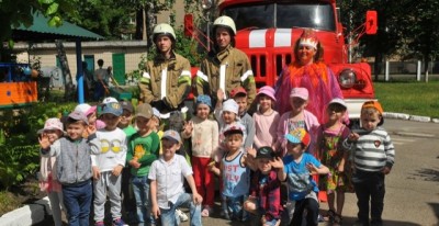 працівники Святошинського РУ ГУ ДСНС України у м. Києвi завітали до вихованцiв ДНЗ №601. Рятувальники розповідали дiтлахам про їхню роботу, продемонстрували бойовий одяг та спорядження, показали пожежно-технічне озброєння спецавтомобіля.