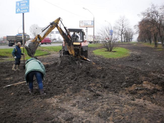 А на вулицях Зодчих, Жолудєва та В. Кучера, на площі 500 м2, сьогодні проводилися роботи по відновленню газонів – завезено грунт, проведено планування та посів трави.