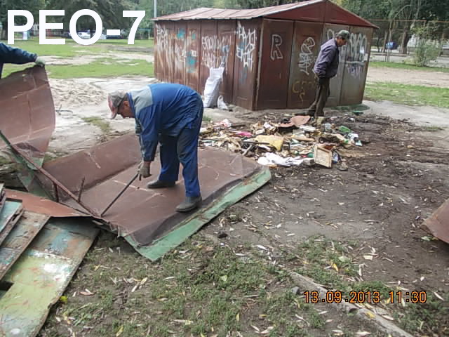 КП РЕО-7. 13 вересня з метою виконання звернень громадян, що надійшли Контактного центру міста Києва щодо незаконновстановлених гаражів, розміщених на прибудинковій території житлового будинку по вулиці Булаховського, 34-а, працівники ремонтної дільниці №1 комунального підприємства «РЕО-7» провели демонтаж одного з гаражів.