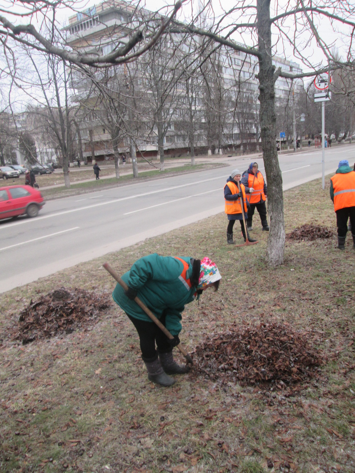 Кожного дня працівники КП УЗН Святошинського району сумлінно проводять догляд за зеленими насадженнями та упорядковують балансові території. Зокрема, 12 січня після санітарної обрізки дерев та вигрібання листя чергові роботи з прибирання рослинних решток проводились у парку «Інтернаціональний», у сквері на проспекті Перемоги, 133 - 135 та на вулиці Булаховського. А також, було виконано щоденне прибирання випадкового сміття та вивезення його на полігон ТПВ.