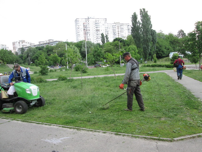 Комунальне підприємство по утриманню зелених насаджень Святошинського району на своїх балансових об’єктах щоденно проводить викошування трав’яного покриву, згідно графіка та у відповідності до «Правил благоустрою міста Києва».