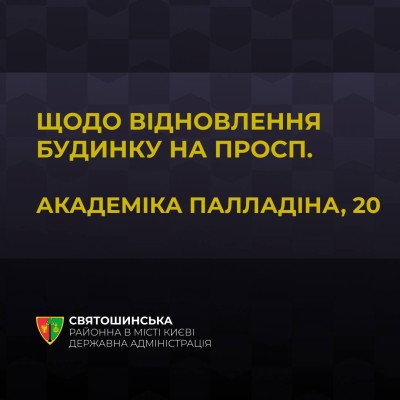 Щодо ситуації з пошкодженим будинком по просп. Академіка Палладіна, 20