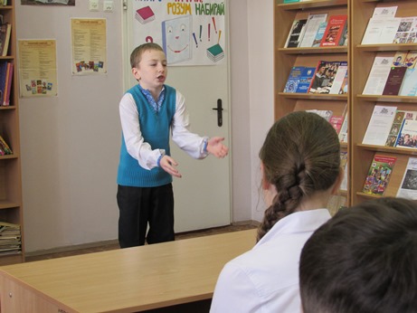 Учні 5-А класу Безщасний Роман, Задорожний Ростислав, Дроб’язко Софія змусили присутніх сміятися над гуморесками П. Глазового. Учениця 5-Б класу Сібілєва Поліна читала поезію О.Олеся під музичний супровід однокласника Пастуха Олександра. Учениця 6-А класу посіла у конкурсі ІІІ місце за власну поезію за мотивами роману «Маргаритко, моя квітко» К. Нестлігер. Учні 7-их класів (Маленкова Уляна, Тарадай Марія, Нечитайло Аліса) запропонували зануритися у складний, але захоплюючий світ фантастики. Полосенко Юлія (6-А клас) представила твір «Йшов по місту чарівник», Таратуто Яна «Клас пані Чайки».
