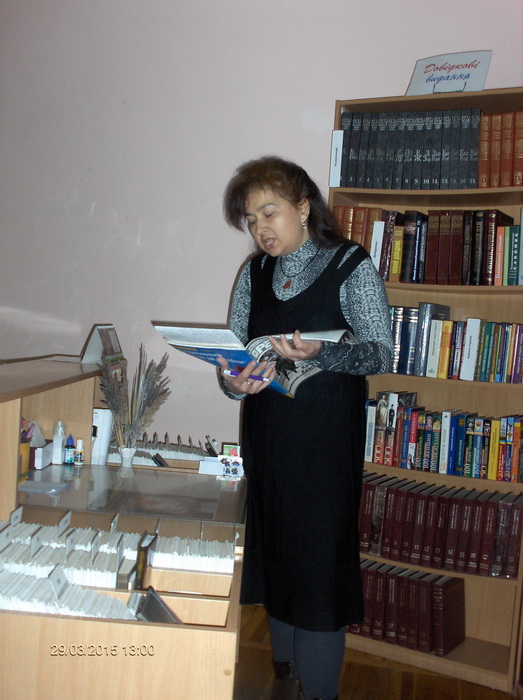 Марина Олександрівна Коваль – бібліотекар І категорії бібліотеки ім. О.Блока підготувала цікаву розповідь про життя Ліни Василівни Костенко, а про творчість видатної поетеси говорили всі разом: читали улюблені вірші, уривки з роману «Маруся Чурай». Активну участь у заході взяли постійні користувачі бібліотеки: Віра Андріївна Балицька, Ніла Миколаївна Піскорська, Олена Йосипівна Поштарук, Ніна Матхіївна Бондур, Людмила Степанівна Ромокшан, які радо поділилися з присутніми своїм власним сприйняттям ліричних творів Ліни Костенко: «Я хочу знати, любиш ти мене», «Моя любове!», «Очима ти сказав мені – люблю», «Я дуже тяжко вами відболіла»; збірок «Сад нетанучих скульптур», «Мадонна перехресть» та інших поезій поем та романів.
