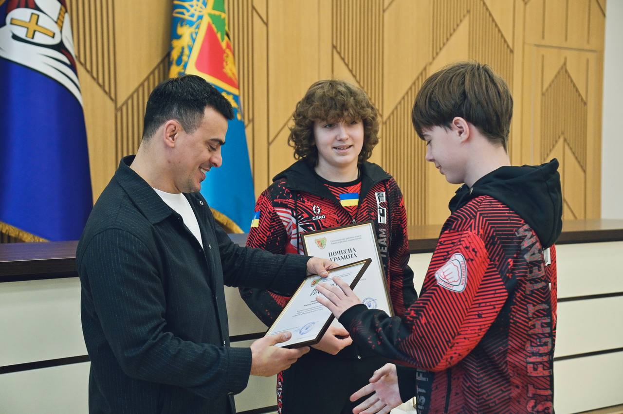 З великим задоволенням він нагородив нашу талановиту молодь — тих, хто представляє Святошинський район на всеукраїнських та міжнародних змаганнях. Він подякував кожному спортсмену за важку працю, характер і прагнення бути кращими. «Ви — приклад того, як віра в себе і дисципліна здатні підняти на нові вершини. Ви — гордість нашої громади. Продовжуйте рухатися вперед — я щиро вірю в кожного з вас» – сказав голова.